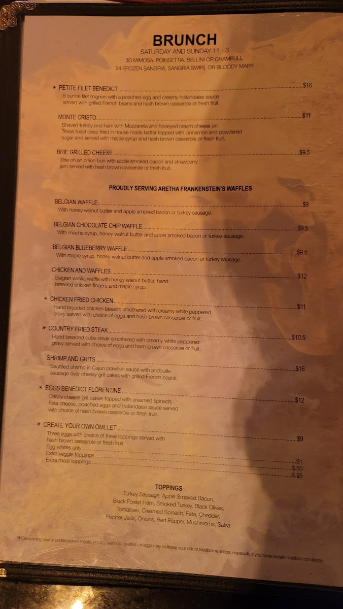 This menu works well at any time of day—perfect for breakfast favorites or a casual dinner—allowing visitors to settle in comfortably. The combination of generous portions and familiar favorites fosters an environment where people can enjoy everyday moments without fuss, accompanied by attentive service and a welcoming setting.